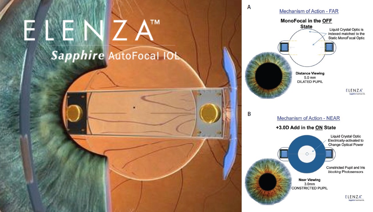 Elenza(Roanoke, Virginia) розробляє Sapphire AutoFocal ІОЛ. Це технологія нового покоління, що включає комбінацію з рідкокристалічних речовин(LCD) та електропристрою з інтегрованим контролером. Цей метод включає електроактивний змінний елемент, який автоматично змінює фокус та підтримує його для різних видів діяльності за змінного освітлення. Лінза контролюється мікроскопічним регулятором, який має передбачений заряд на 50+ років.